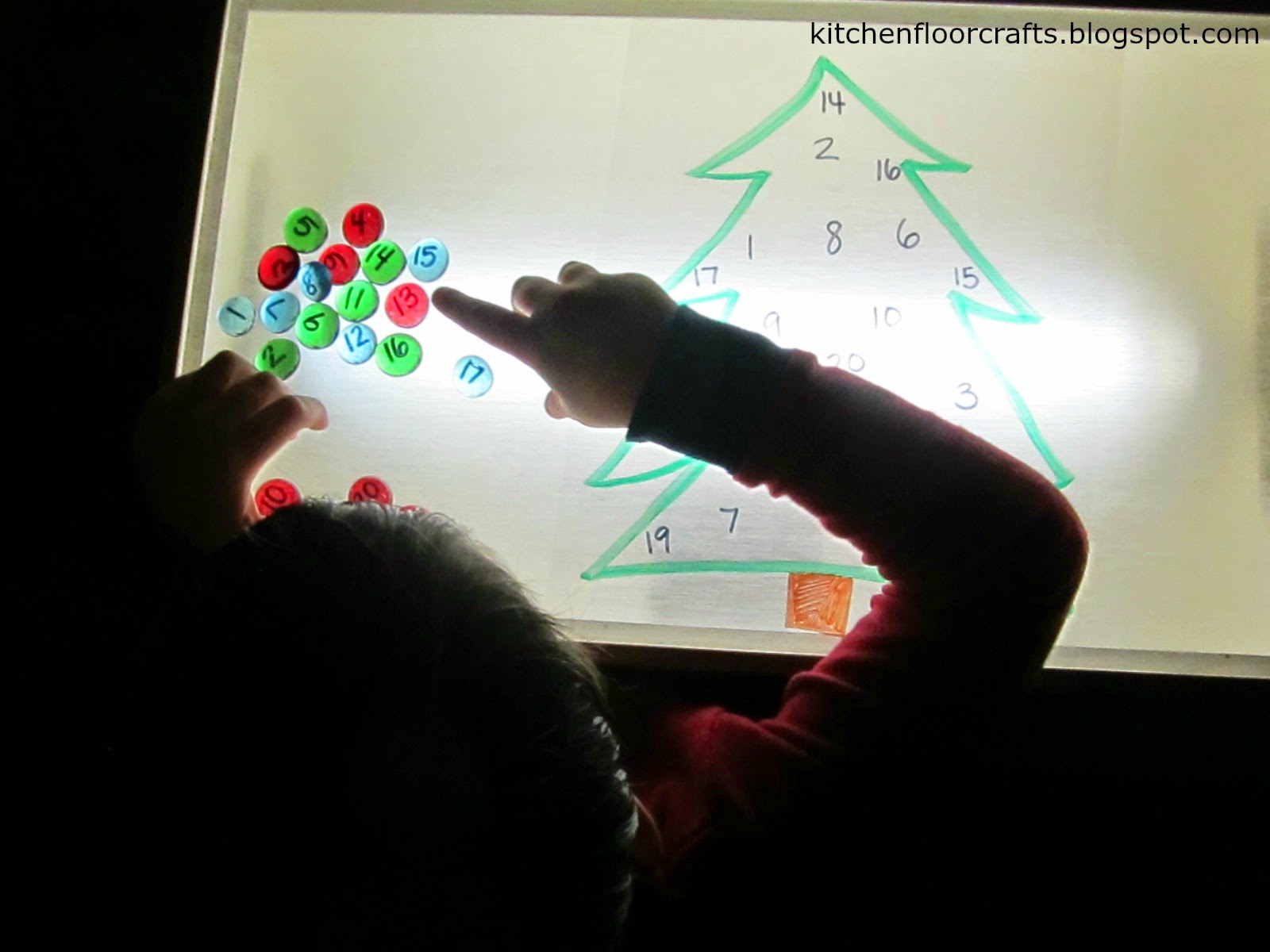 We've played with our Christmas Tree Numbers and light table a few more times this week. We'll be looking for more ideas for light table play as we continue with this dark, December light.