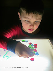 We've played with our Christmas Tree Numbers and light table a few more times this week. We'll be looking for more ideas for light table play as we continue with this dark, December light.