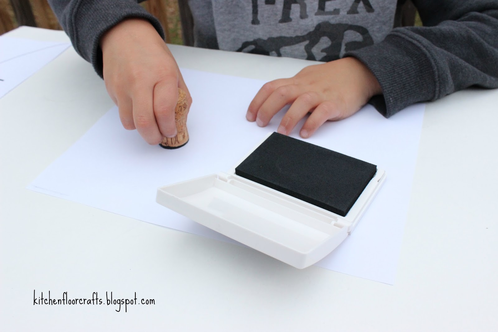 Press the larger cork onto the pad and then stamp onto the paper. The first few times it is used the cork needs to be pressed more firmly onto the ink pad so that it can absorb the ink.